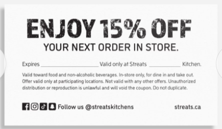 These 15% Off cards are great ways to promote your restaurant. Give them away to local businesses, to staff to give to their friends, or as a way to make up for order errors.